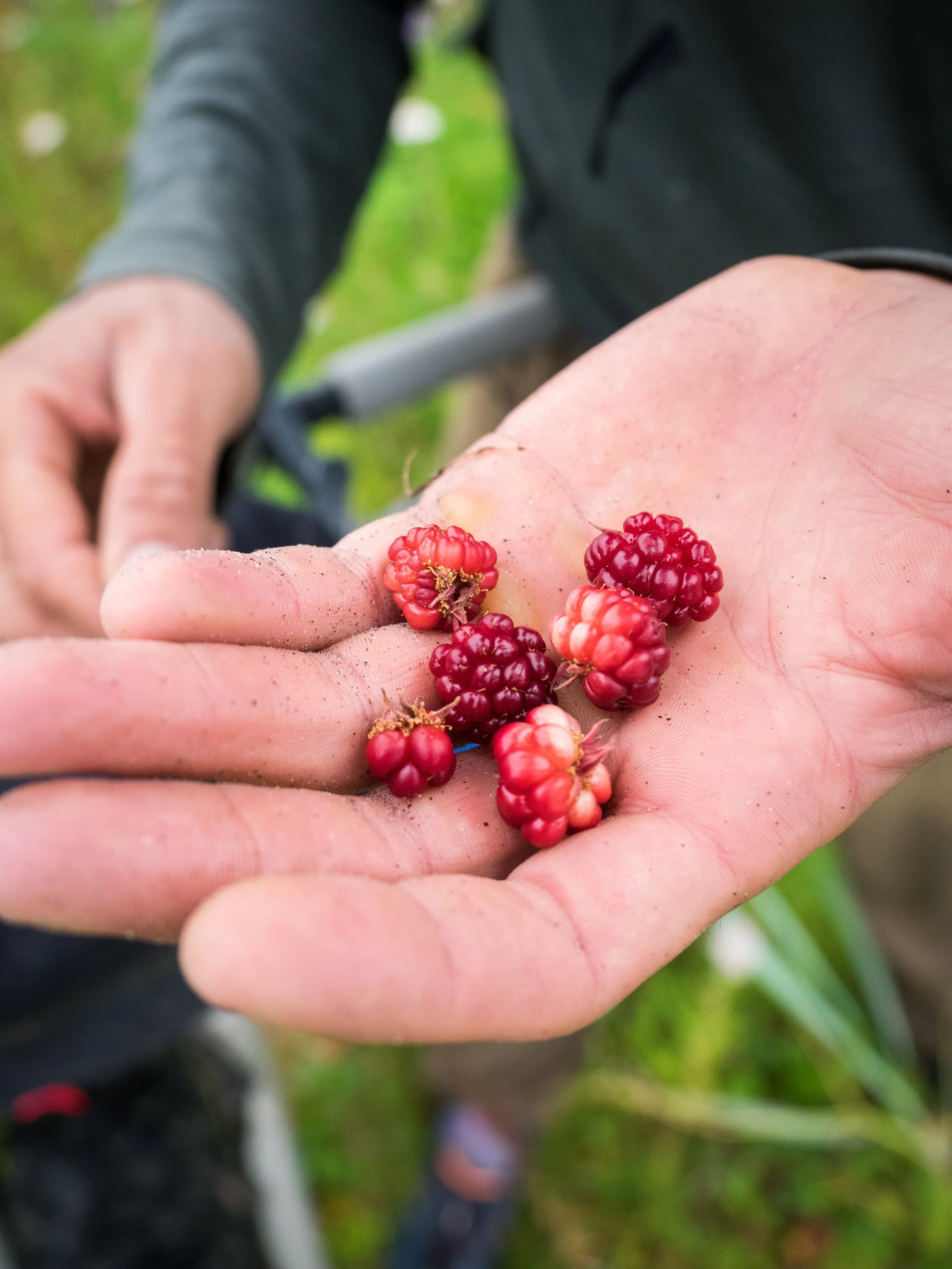 Speed—oh how elusive it had been over the past two days. Though the rain was still our constant companion, our spirits were rising as our tires rolled unimpeded down a hard packed gravel road. Relief from the sand and the wind was welcomed by all. As we flowed past raspberry bush after raspberry bush and giant piles of bear scat, we understood the cause for Skurka’s warning. We were once again reminded that we were visitors in this wild land.