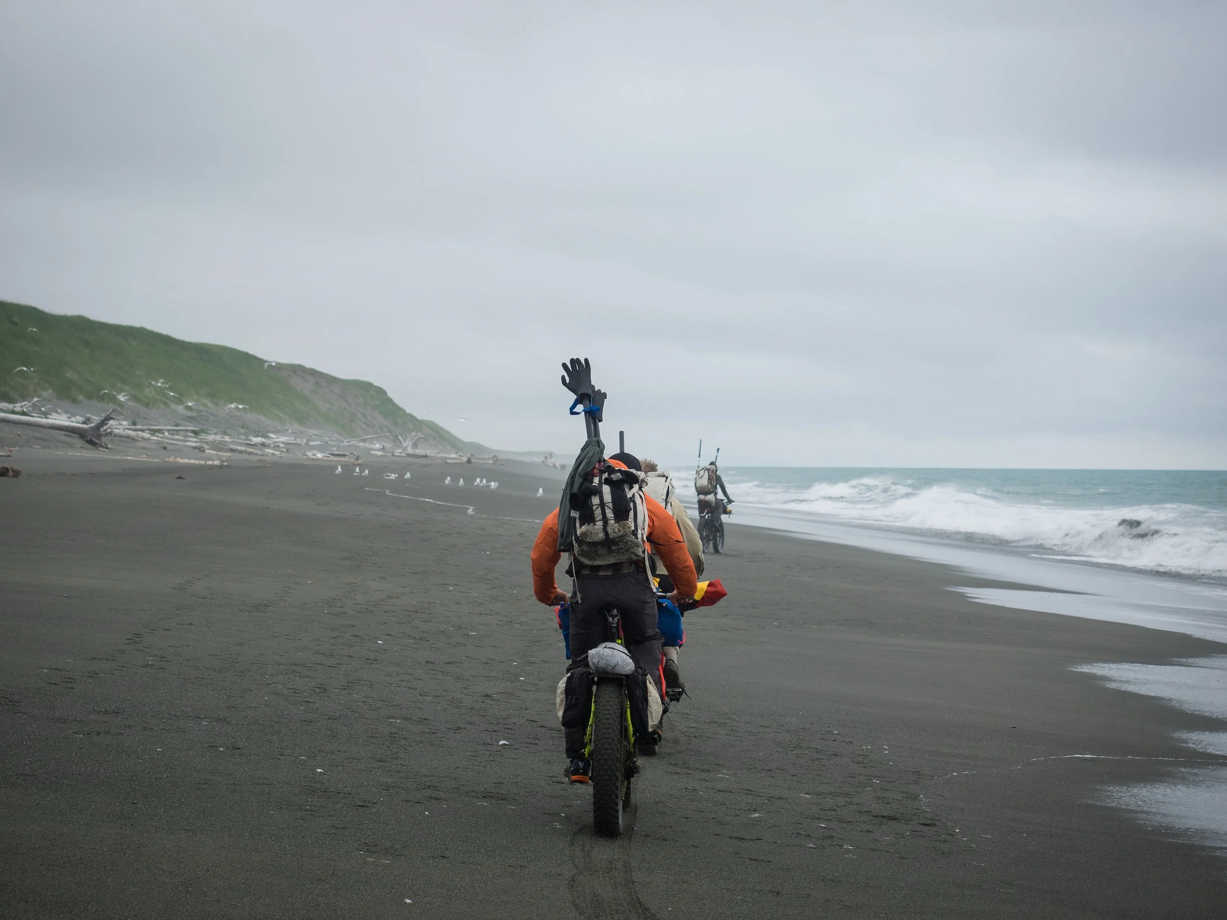 After the last couple days of relentless soft riding, my knees were both swollen and tight. My hands were sore from numerous encounters with the devious spines of Devils Club—a nasty shrub that is common in the moist climates of Alaska and the Pacific Northwest. The previous day had ended with another last ditch attempt to find Skurka’s elusive road. After what turned into a three hour bushwhack odyssey involving massive stands of the “club” and treacherously slick moss covered logs, we retreated demoralized and battered by defeat back to the beach.