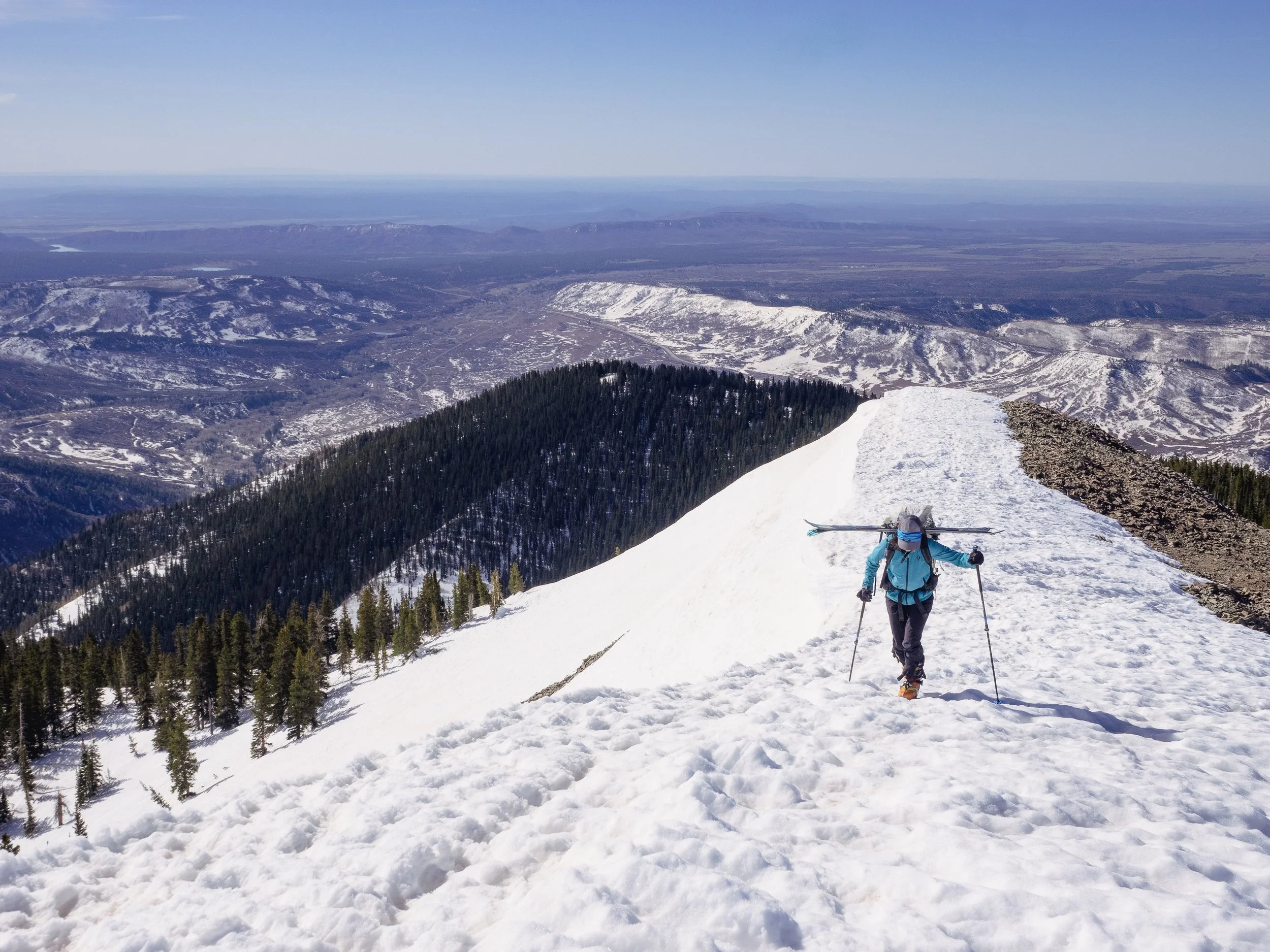 By the time April arrives in southwest Colorado, the phrase, “I’m over it,” is the opening to nearly every conversation. The conversationalist is indicating that they are done with winter and all that it brings to the Rockies—frigid temperatures, icy roads, slow to start vehicles, weather delays, road closures, the landscape covered all in white. With the first sporadic warm days the exodus begins, and the green license plates of Colorado begin migrating to the deserts of Utah, New Mexico, and Arizona. Roof top ski racks are replaced with bike racks and long dormant rafting gear begins to appear in driveways. After several months of chasing the elusive “face shot” and seeking to visit the “white room,” the ski gear is abandoned to accumulate dust in a back corner of the garage until the first flakes reappear in late fall. These are the signs of a change in season in the mountain west and an indicator that the real skiing of the year is about to begin. Have fun in the desert, y’all! For us diehard aficionados in the snow tribe, springtime is when the skiing gets good.